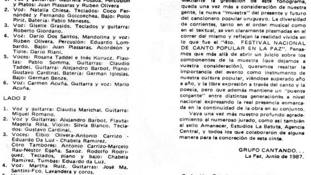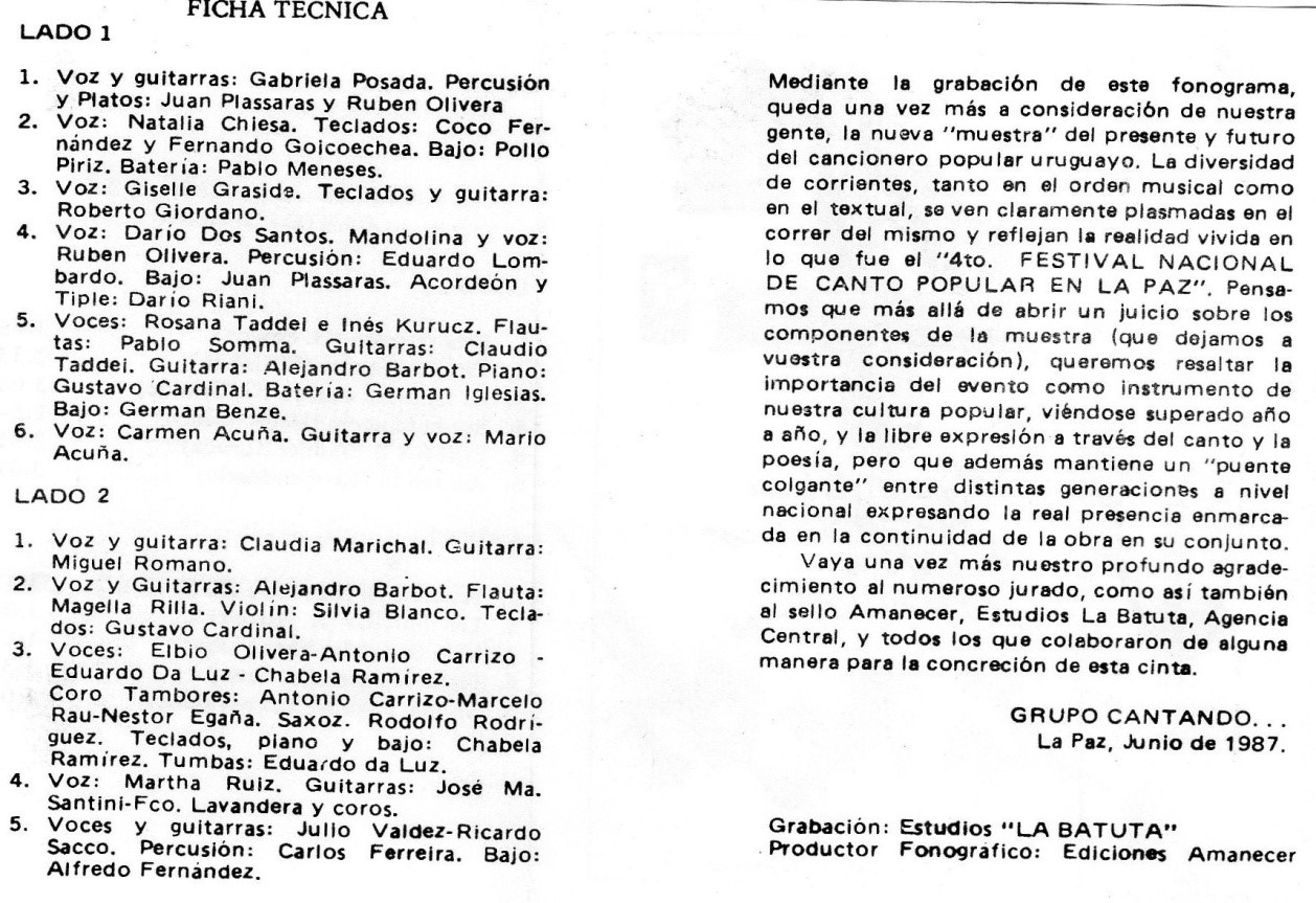 Integrantes del Grupo Cantando y participantes. Identificamos a Enrique Amaya, Gabriela Baratta,Horacio Muzzio, Fabio Llanes, Tino y otros - 36